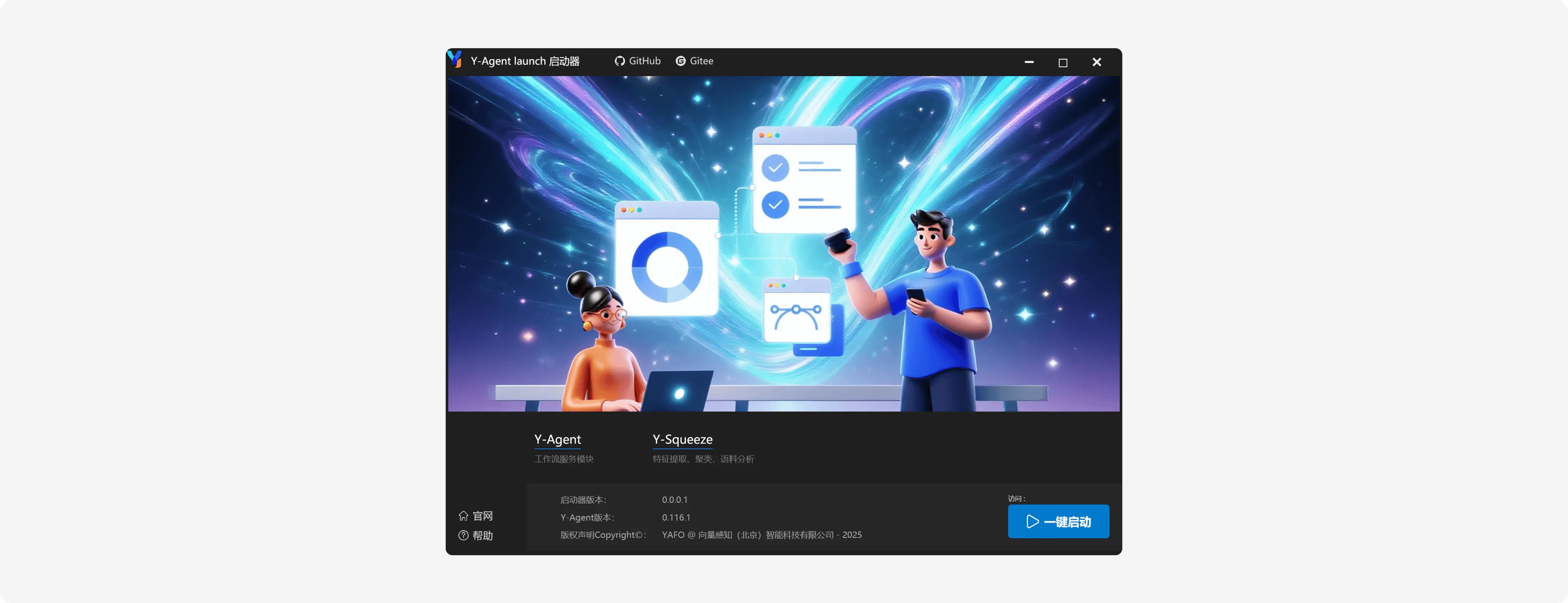 下载完成后,解压缩,然后双击 Y-Agent-launch.exe 启动程序。