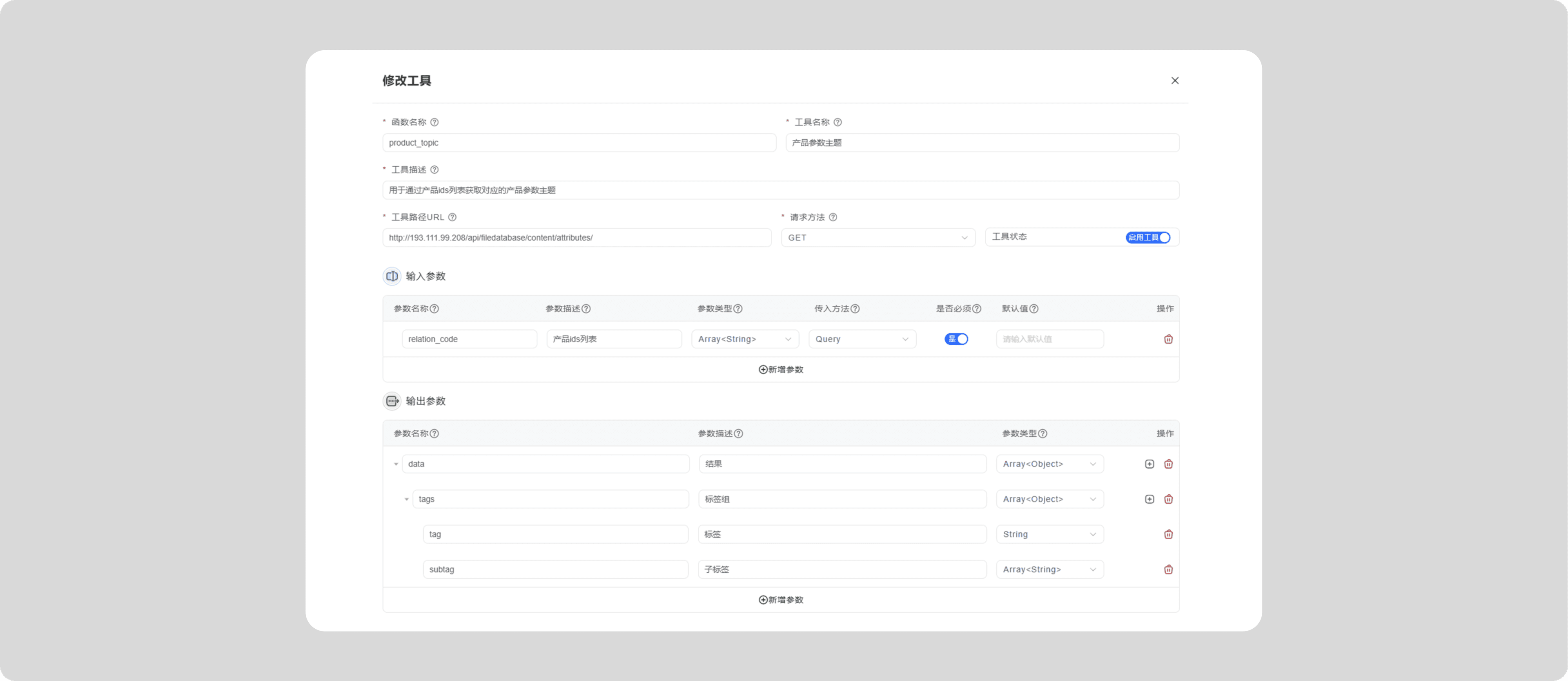 您可以根据需要把内部的API接口配置成API插件工具,具体配置请参考 插件工具.