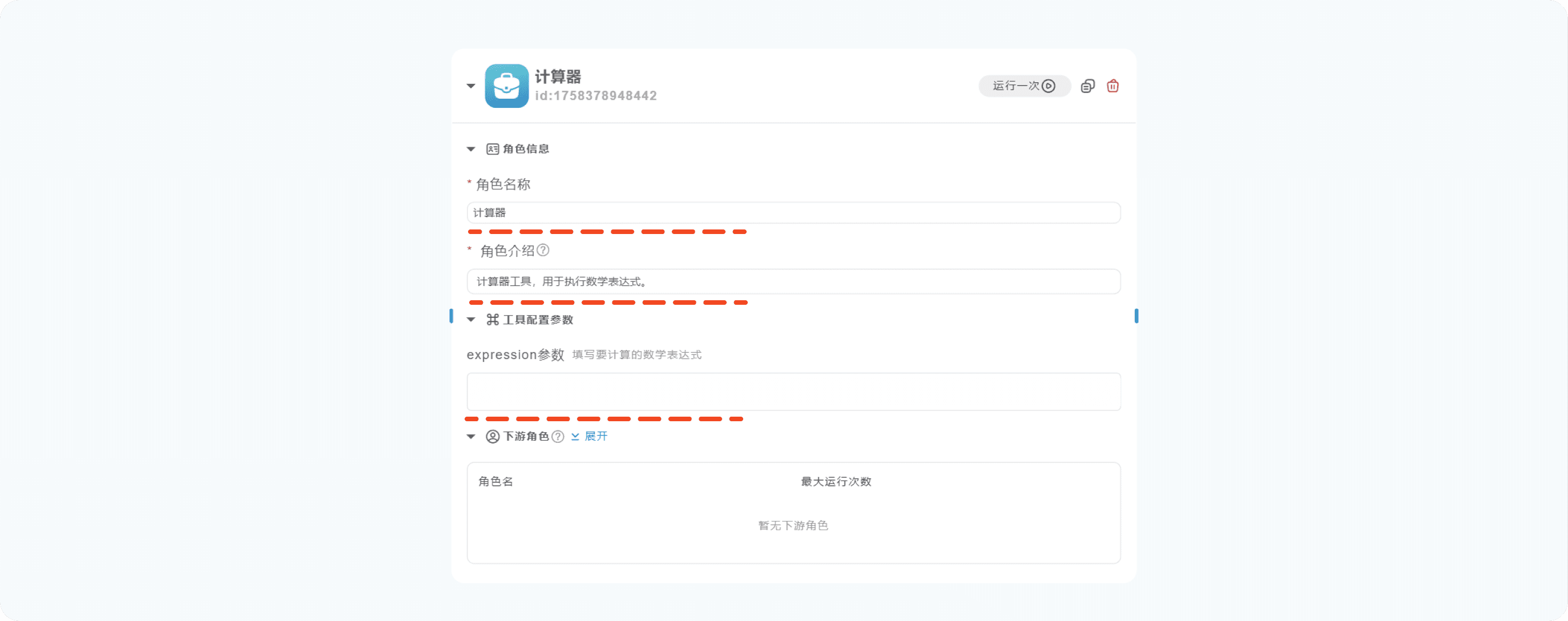 - 角色名称:工具作为节点后,每个工具就是一个角色,名称就是这个角色的名称。