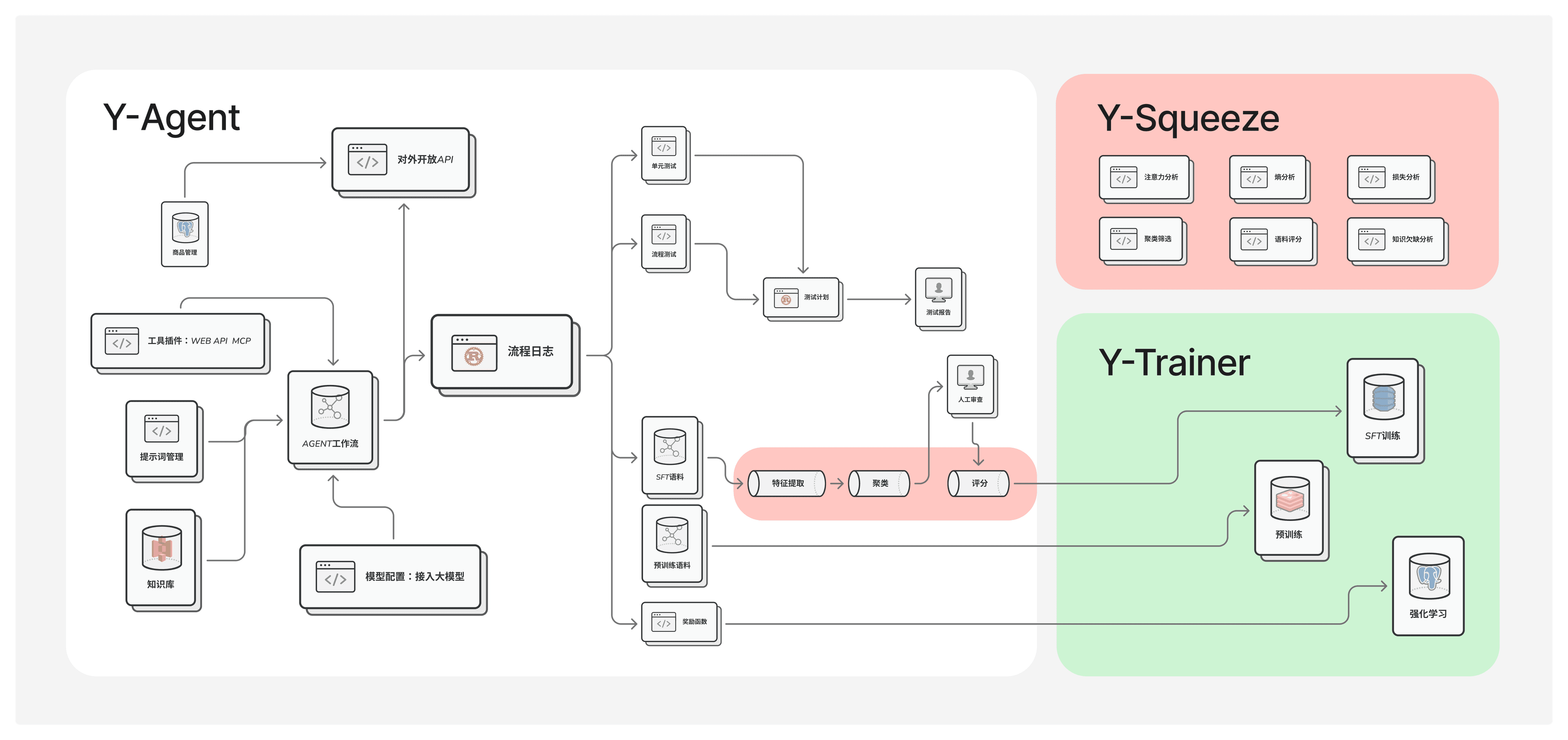 与Y-Agent无缝集成,支持预训练、指令微调、强化学习。